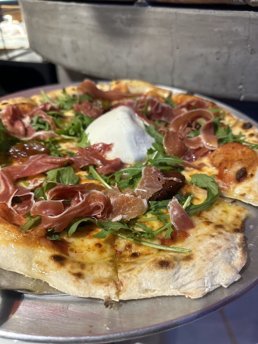 The vibe is comfortable and inviting, with warm lighting and plenty of greenery softening the city edge. Regulars tend to come for a relaxed early lunch or a casual dinner, especially on cooler days when sitting close to the wood-fired oven feels particularly cozy. The combination of coffee aromas and fresh-baked pizza makes it a spot where you might linger longer than intended.