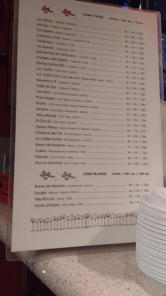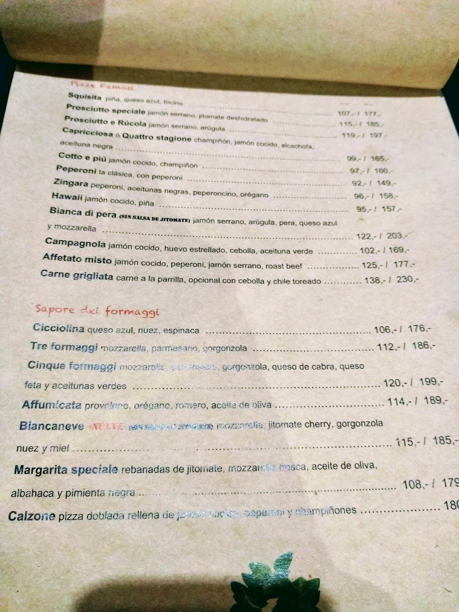 - Pizzas: Includes traditional varieties such as Margarita, Mozzarella-based pizzas, Peperoni, Hawaiana, Mediterránea, as well as daily specials and wood-fired options.