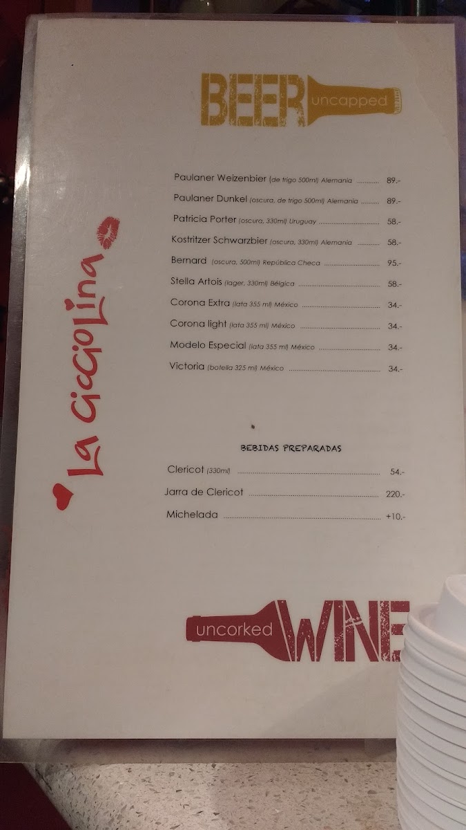- Beverages: Wide range of drinks including various coffee preparations such as Italian coffee, Cappuccino, Mochaccino, and café americano; as well as alcoholic options including wines, beer, and cocktails like Clericot.
